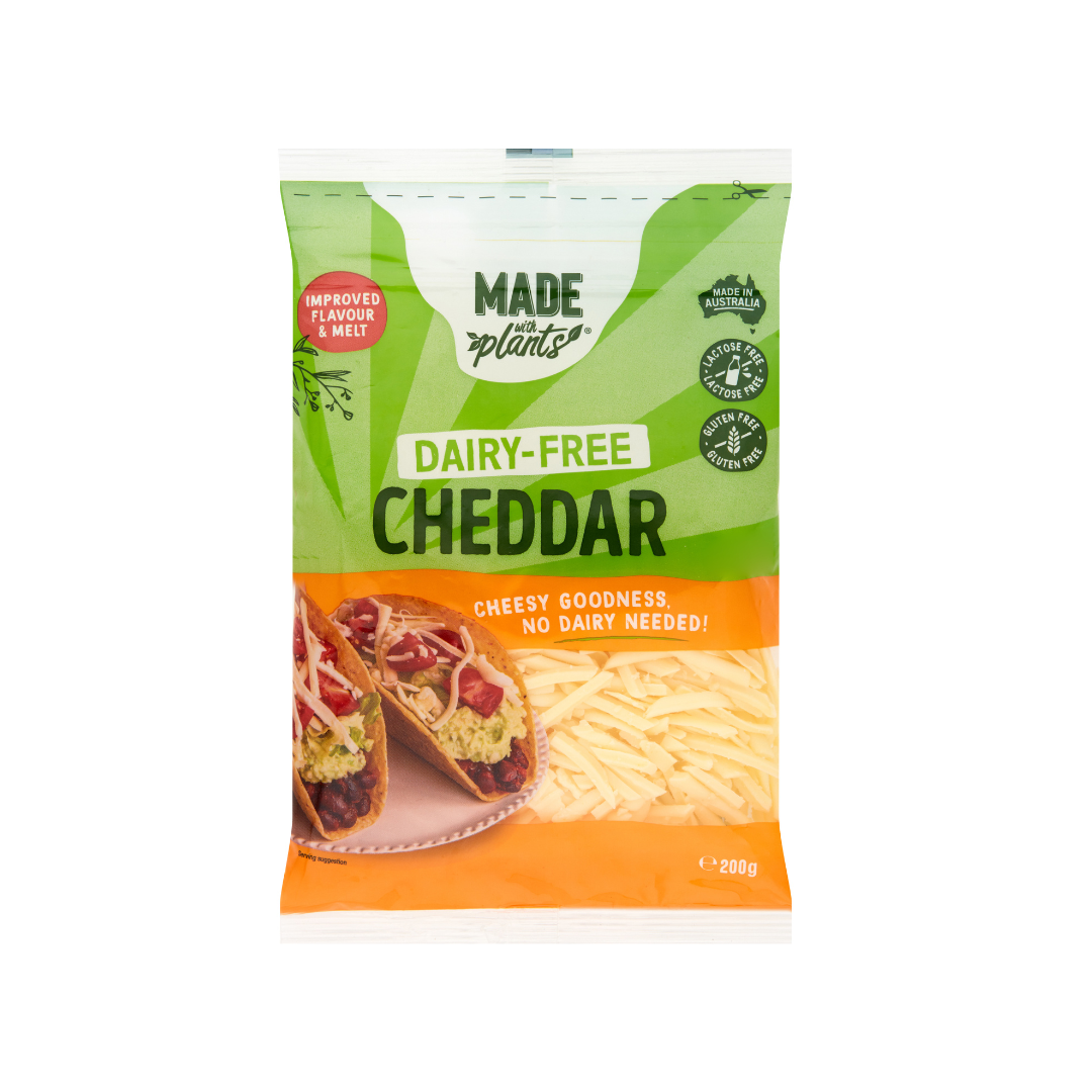 Made With Plants Cheddar Shreds even melt like a dream – use them to create droolworthy pastas, tasty wraps, or the ultimate grilled cheese sandwich.
